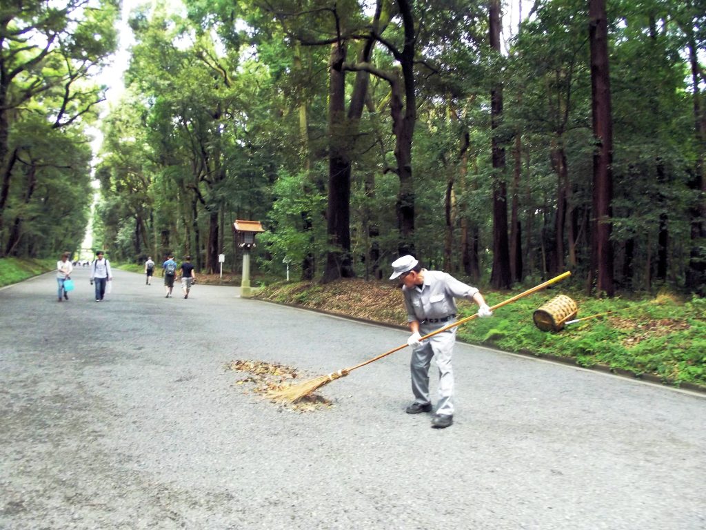 Una de las cosas que más nos llamó la atención fue ver a una persona mayor barriendo las hojas del parque a la entrada del santuario Meiji en Tokyo. Parecía más un artista o bailarín que un empleado de limpieza. Todos sus movimientos eran elegantes y coordinados y poseían una cadencia lenta pero uniforme que convertía este «sencillo» trabajo en una ensayada coreografía. Nos quedamos embelesados admirando el arte con el que este señor realizaba su labor y al observarle tuvimos la sensación de que el tiempo se ralentizaba. Esto nos permitió apreciar con claridad como las hojas abandonaban suavemente el camino, ocupando el lugar exacto que el trabajador había escogido para ellas al borde del camino.