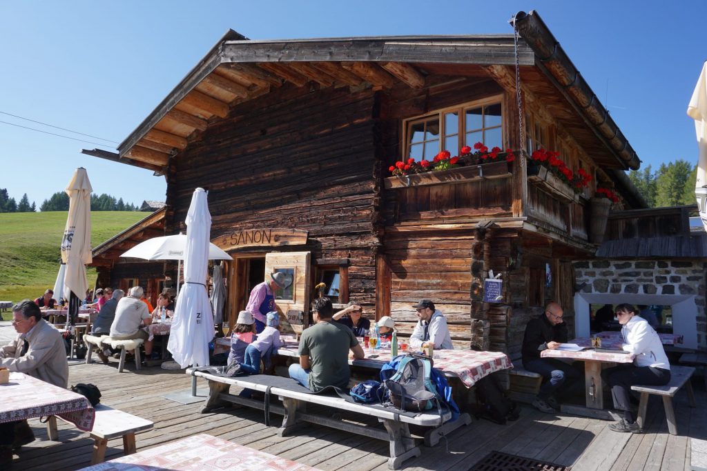 Durante el idílico paseo paramos a comer en la Malga Sanon una tradicional comida en una granja de montaña. Un momento inolvidable del viaje.