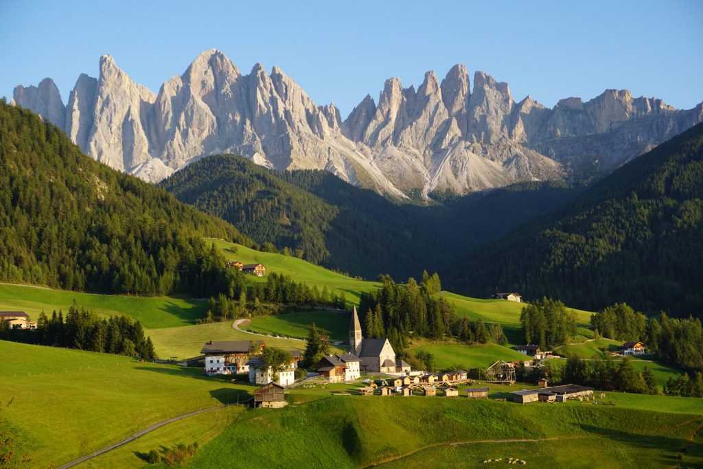 Las carreteras escénicas de Dolomitas son un sueño para los que disfrutan de los roadtrip: densos bosques de coníferas, esbeltas montañas, verdes valles y pasos de montaña panorámicos.
