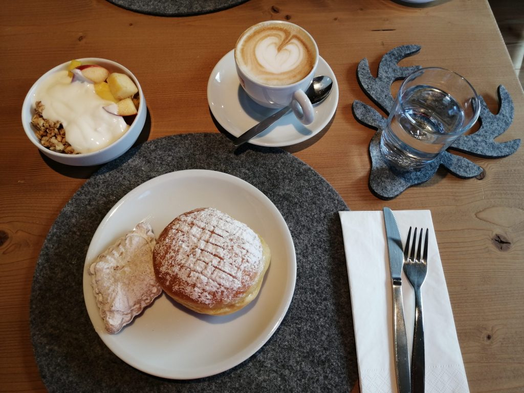Dedicamos la mañana a explorar los bellísimos prados de Alpe di Siusi. Amanece con mucha niebla (no, no es esa niebla delicada que tanto gusta a los fotógrafos, es de esas nieblas que nada gustan a los montañeros porque no se ve un panizo :D). Así pues…volvemos al hotel a desayunar. ¡Estamos en Italia, aquí todo se arregla con comer!