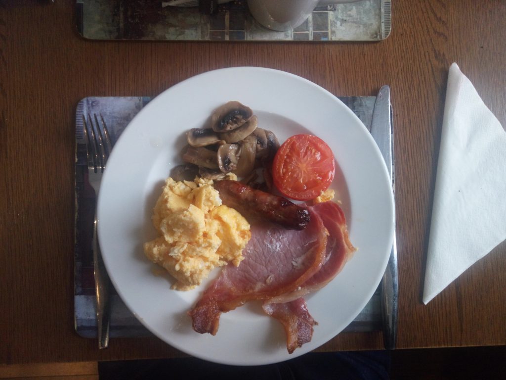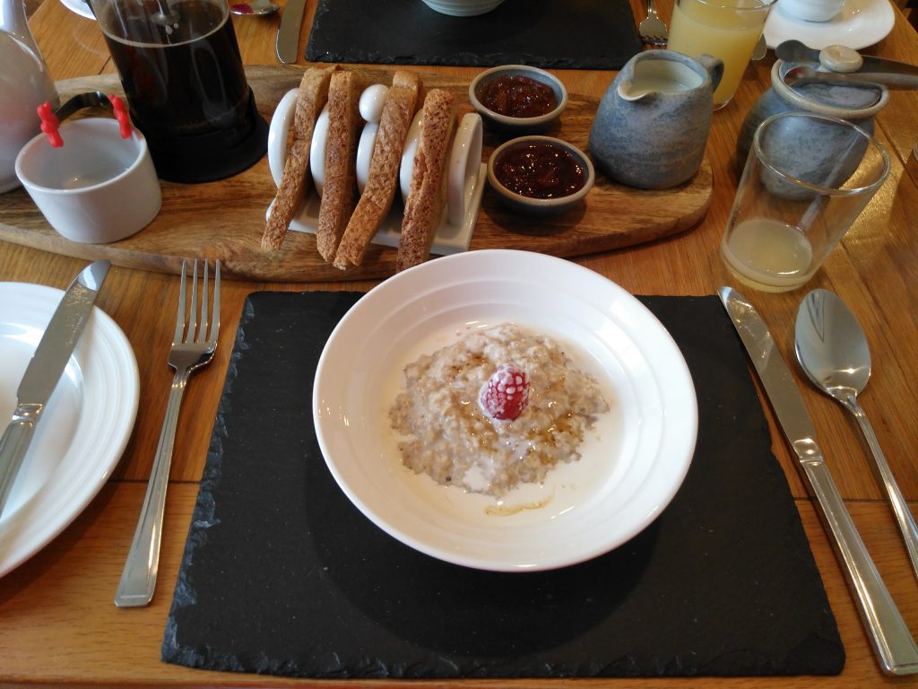 – Desde luego para los escoceses el desayuno es una de las comidas principales del día o cuanto menos de las más copiosas. Como comprobaréis no tiene nada que ver con el nuestro. Os contamos en qué consiste un desayuno escocés. De entrante, sí, has leído bien hay entrante, primer plato, segundo y hasta tercero… desde que hemos vuelto de Escocia pasamos un hambre atroz durante la mañana, jajaja. Como iba diciendo, de entrante se suele tomar cereales, fruta y tostadas con mantequilla y mermelada. De primero normalmente porridge, que son unas gachas de avena con leche caliente acompañadas de miel, frutas del bosque, fresas o azúcar. Nos han gustado mucho, no dejéis de probarlas.