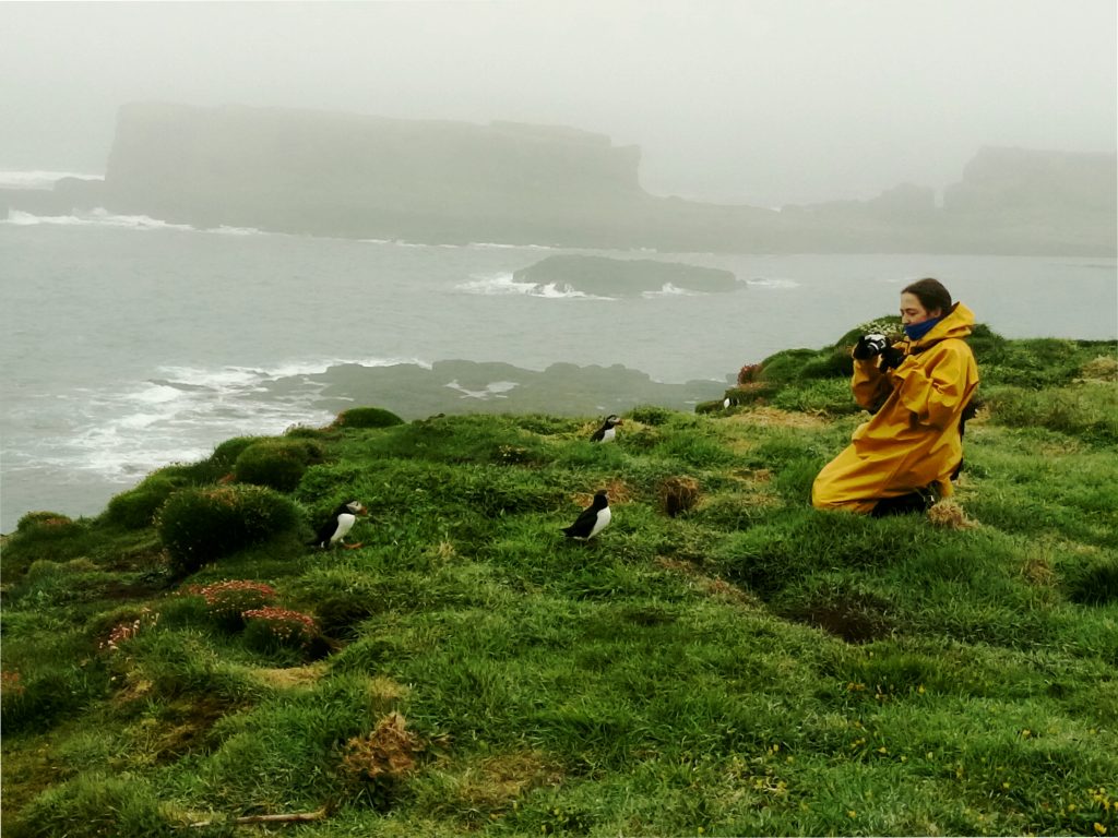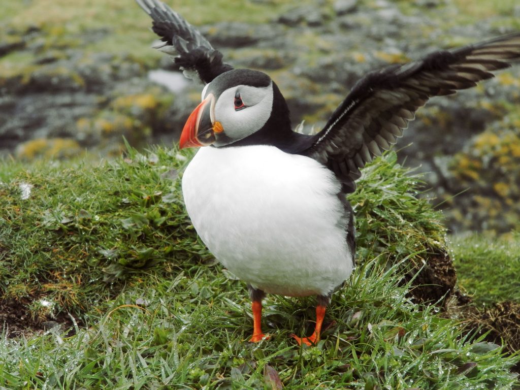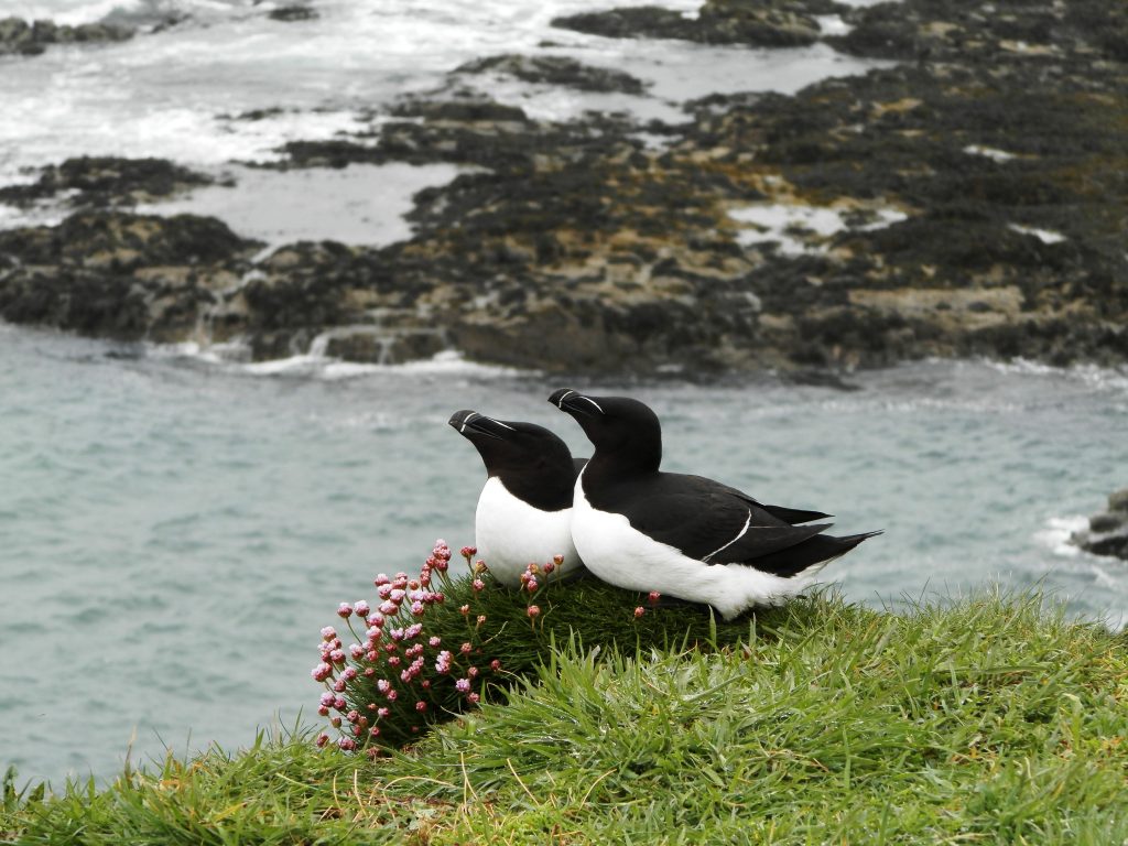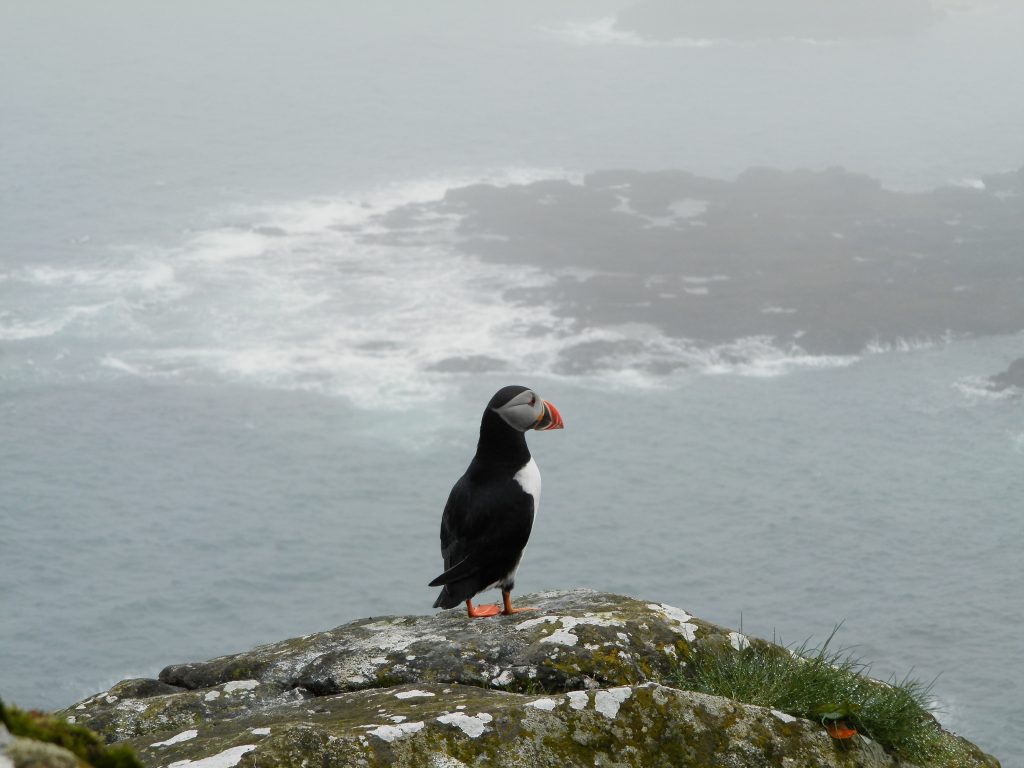 En concreto la sensación de alcanzar desde el barco el acantilado y verlo repleto de los trabajadores frailecillos se convirtió quizás en el momento más especial del viaje. Poder estar tan cerca de estas criaturas, apreciar cómo trabajan sin descanso en la construcción de sus nidos subterráneos, disfrutar de como socializan o simplemente sorprendernos con sus aleteos y torpes carreras por la hierba, nos hizo muy felices dado que era algo que soñábamos desde hace mucho tiempo. Nos hubiéramos quedado todo el día allí mirándolos como bobos… ¡Ojalá podamos volver a verlos en otra ocasión!