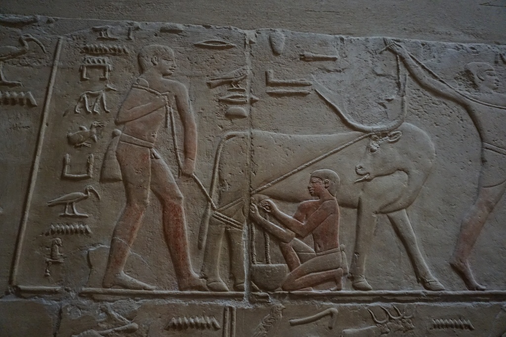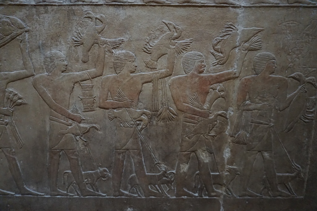 Nos adentramos en el interior de la Mastaba de Mereruka, donde los relieves, muy bien conservados, nos muestras escenas cotidianas de la época, imágenes en grandes dimensiones del difunto y sus sirvientes portando ofrendas que le acompañaban al Más Allá. Durante la visita vienen a nuestra memoria recuerdos de los bajorrelieves de Los Templos de Angkor.