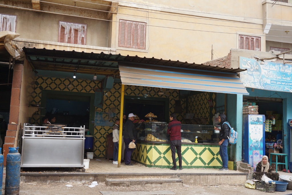 De camino a Dashur, paramos en una pequeña aldea a coger de un puesto callejero pan de pita y falafel para almorzar.
