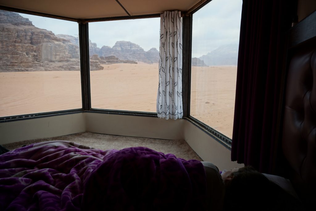 Nos alojamos dos noches en este campamento del desierto de Wadi Rum. Para nuestra sorpresa cuando llegamos nos agasajaron con una tienda de categoría superior a la contratada, una tienda de estilo beduino con baño privado dotado de ducha y ventana panorámica. Las instalaciones del campamento eran impresionantes, con todo lujo de detalles. Además tuvimos la suerte de compartir la estancia con otros viajeros muy tranquilos, por lo que la estancia en el campamento fue muy relajante, algo que nos preocupaba un poco pues en algunos campamentos montan fiestas por la noche y acaban bailando hasta la Macarena :S