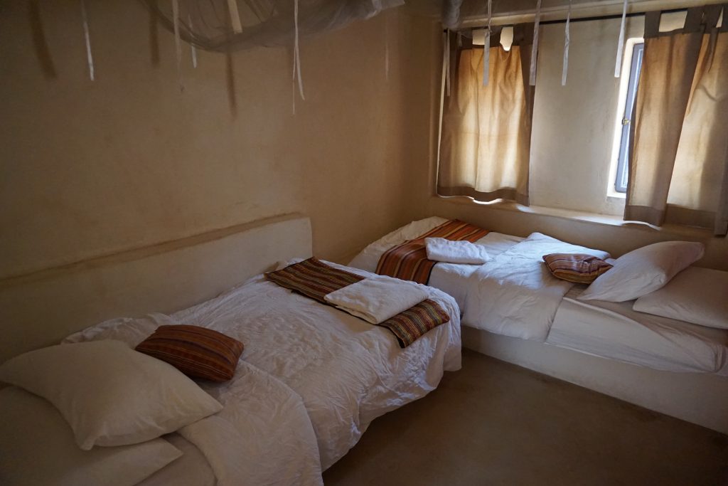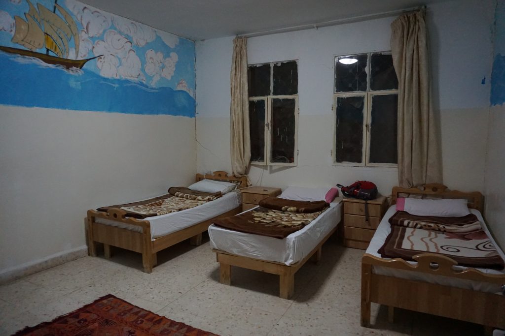 Como os comentamos teníamos previsto pasar esta noche en el Ecolodge Mujib Chalets pero como la carretera estaba cortada no pudimos alojarnos allí y a última hora tuvimos que coger el único alojamiento que quedaba disponible en Dana Village. No recomendaríamos este alojamiento ni a nuestro peor enemigo, pasamos una tortura de noche en unas camas incomodísimas, muertos de frío porque solo teníamos una manta roída. El baño era compartido pero las puertas no cerraban con lo que no existía intimidad. Desayunamos y cenamos en el alojamiento y fue la peor comida de todo el viaje. Nos pareció carísimo para la calidad de las instalaciones.