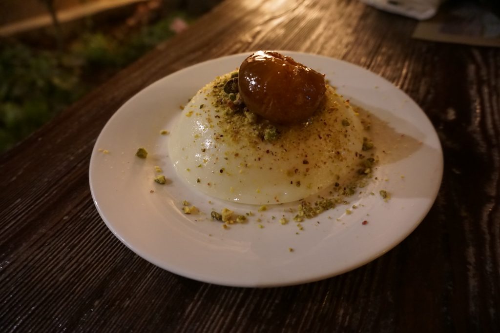 Los postres se merecen un artículo aparte, pero como adelanto os aconsejamos las baklavas, un clásico de la repostería de Oriente Medio, un delicioso pastel de masa filo rellena de una pasta de frutos secos bañados en miel; hareeseh, rico bizcochos de coco y almendras, y nuestro favorito, el mohalabeh, nos ha recordado mucho a la Panna cotta italiana, es una especie de flan hecho de leche de almendras y azahar acompañado con higos en almíbar. No podía faltar en esta lista la pasta de almendras que nos pusieron para desayunar en el desierto, es como nuestro turrón blando, ¡fue nuestra perdición!