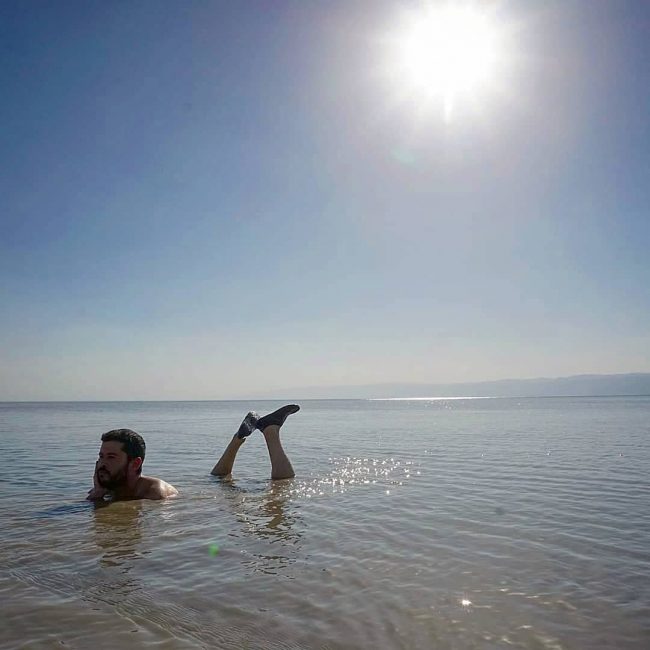 El Mar Muerto es un lago con una salinidad muy alta, los principales motivos por los que se visita es para experimentar la sensación de flotar y por el efecto beneficioso de sus lodos sobre la piel . Es recomendable tener acceso a duchas de agua dulce para poder quitarte los lodos y eliminar la sal de tu cuerpo, por lo que no es muy buena idea acceder a él desde cualquier punto. La mejor opción es acceder desde una playa con servicios, las hay públicas y privadas (estas últimas pertenecen a hoteles). Las públicas tienen un precio de entrada mucho más bajo que las privadas, pero, como decíamos anteriormente tenéis que tener en cuenta que en su cultura no está bien visto que las mujeres se bañen en traje de baño, por lo que si queréis evitar situaciones incómodas lo más prudente es acceder desde un hotel. Como no nos gustan los grandes resort de lujo, para probar esta experiencia reservamos alojamiento en un ecolodge con playa privada dentro de la Reserva de Mujib. Como ya habréis leído, al estar cortada la carretera del Mar Muerto no pudimos acceder a nuestro alojamiento y finalmente el último día nos tuvimos que conformar con acceder desde una de estas grandes cadenas hoteleras. Fuimos al hotel Ramada Resort Dead Sea, nos cobraron 30€/persona por el pase de un día que incluye acceso a la playa, piscina y almuerzo buffet.