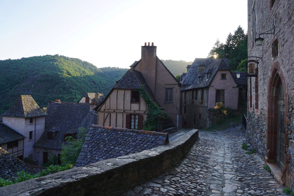 Madrugamos para conocer en soledad la minúscula Conques. Volvemos a recorrer todos sus rincones para ver cada detalle a la luz del sol, la abadía, las calles empedradas, las casas de entramado, los tejados de lajas de piedra… Conques se convirtió en un pueblo de gran importancia en la Edad Media pues fue capaz de atraer a los feligreses de la cristiandad de toda Europa con sus reliquias, una de ellas el «Santo Prepucio» jajaja