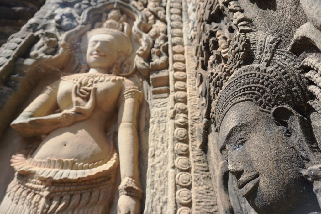 Entre 2.000 y 3.000 tallas femeninas decoran Angkor Wat, y… ¡todas ellas son diferentes! Especialmente llama la atención que estas devatas y apsaras lucen hasta 37 peinados distintos.