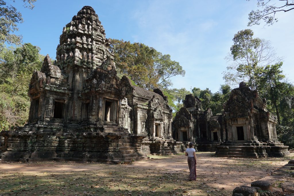Este templo presenta varios aspectos comunes con el Ta Prohm. Al igual que éste último se encuentra invadido por una desbordante vegetación, pero a diferencia puede visitarse con mayor tranquilidad al ser menos famoso.