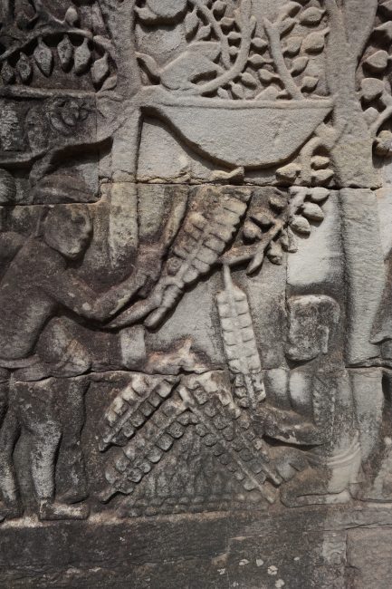 Una de las tallas más famosas del templo es la que representa el mito hindú del Batido del Océano de Leche.