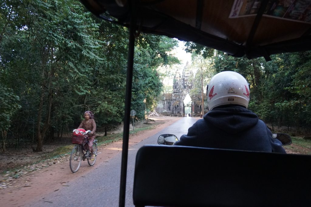 El resto de los días, para el circuito corto y largo, contratamos a un conductor con tuk-tuk, que nos resultó también muy cómodo. Se hace muy ameno pues las distancias entre los templos son cortas y la brisa que genera el movimiento del vehículo es muy agradable.
