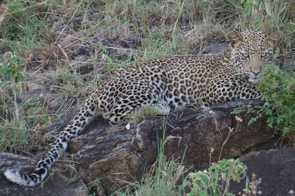 El circuito de Kakine fue uno de nuestro favoritos del parque. Dispone de unas extensas praderas a orillas del río Narus concentrando grandes manadas de herbívoros y aves, y varios roquedales (kopjes) donde los felinos suelen descansar. Es maravilloso para observar animales. Vimos varias veces leopardos, en una de las ocasiones a una hembra con dos cachorros.