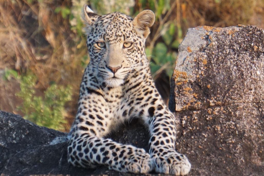 A diferencia de otros parques, en Kidepo los leopardos suelen utilizar los kopjes (afloramientos de rocas de granito) como puestos de observación. Es muy común verlos descansando sobre las rocas calientes durante la mañana antes de bajar a cazar. Debido a que la vegetación es más corta y menos densa que en el sur de Uganda, los leopardos son sorprendentemente más fáciles de avistar aquí. El leopardo es el felino más fuerte en relación a su tamaño. Son capaces de arrastrar presas que pesan tres veces más que ellos hasta la copa de los árboles. Pueden correr a casi 60 km/h, pero lo más impresionante es su capacidad de salto: pueden saltar hasta 6 metros hacia adelante y 3 metros verticalmente en un solo movimiento. Tienen la dieta más variada y adaptativa de todos lo felinos y llevan una vida solitaria, solo se juntan para aparearse y cuando la madre cría a sus cachorros.