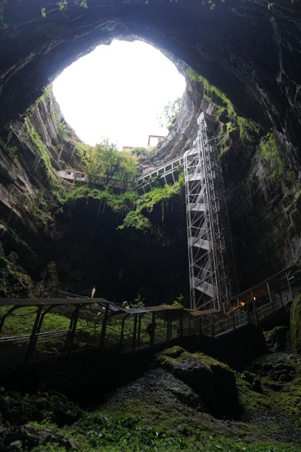 La visita comienza descendiendo hacia el interior de la sima, 103 metros, para lo cual dispones de un ascensor o unas escaleras. Una vez en el interior, recorrerás caminando una serie de galerías hasta llegar a un embarcadero, en el cuál deberás esperar tu turno para tomar una barca. Realizarás un pequeño paseo en barca acompañado de un guía. Si es posible agrupan a la gente por idiomas, en nuestro caso coincidió que había varias familias españolas cerca así que la explicación fue en español. Cuando atracas en el siguiente embarcadero continuas con el itinerario a pie guiado por el dispositivo multimedia hasta recorrer unos impresionantes lagos subterráneos y galerías repletas de estalactitas y estalagmitas.